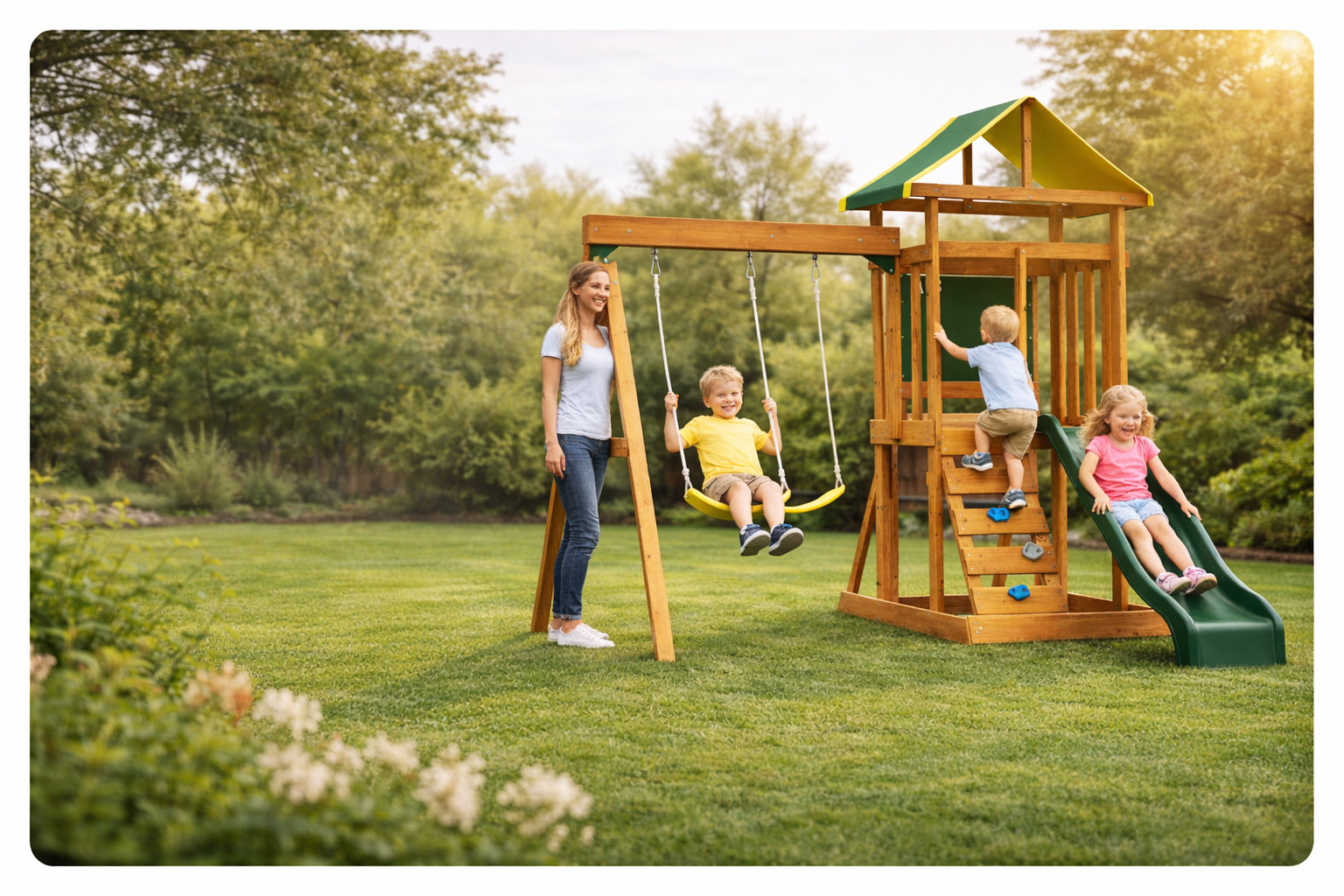 We work hard to make sure your swing set as stylish as they are strong.